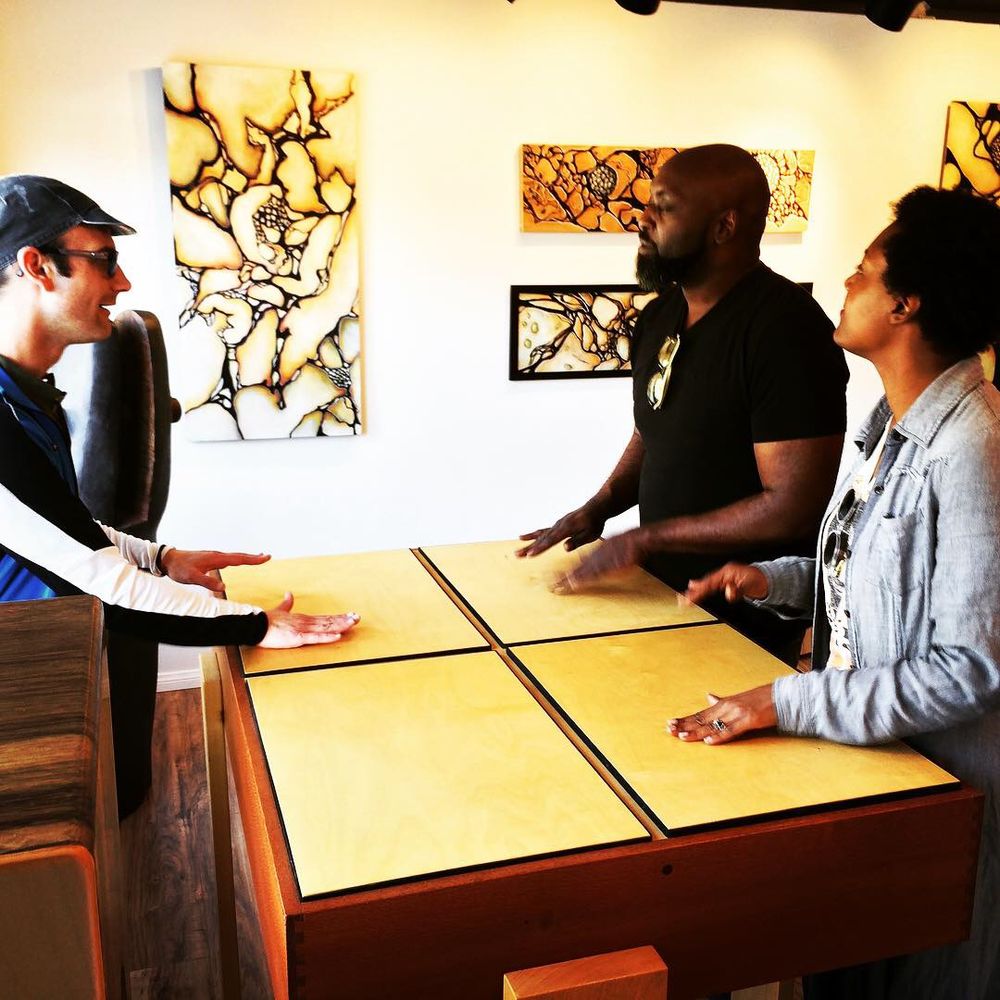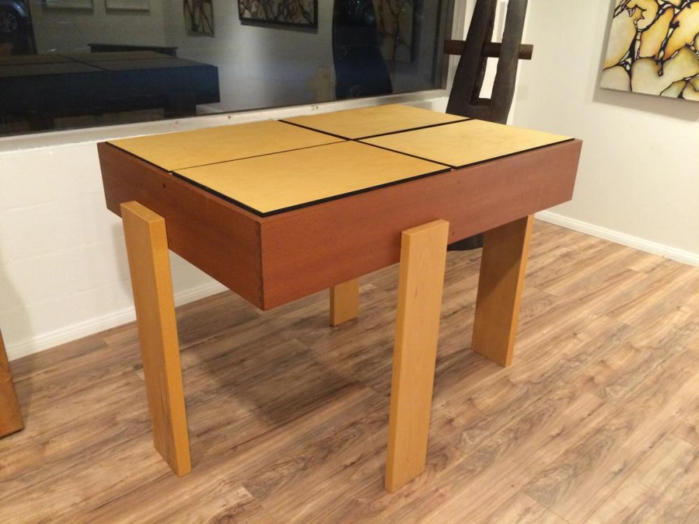 Over the years, I’ve built cajón tables from recycled library shelves to exotic hardwoods, often in collaboration with my longtime studio partner, Kirk Delman.