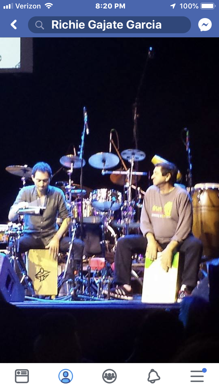 Roland playing his custom Kotz super snare (used on several Hip Hop recording sessions) while Richie plays his signature Kotz Gajate model cajon which features an ergonomic angled tapa and a pair of Kotz proprietary Slap Pads.